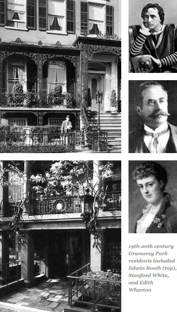 Many architecturally significant buildings now encircle the park. Among them is 34 Gramercy Park East that is the oldest surviving co-op in the city (built in 1883), it was the first ever residential building to boast an elevator. 15 Gramercy Park South, the largest Victorian mansion in town, was designed by Calvert Vaux and now houses the National Arts Club. Next door, the great Shakespearean actor Edwin Booth founded another club in 1888 that he called The Players. Lots 27 through 30 contain the beautiful neo-classic Friends Meeting House (now Brotherhood Synagogue) that became a refuge for fugitive slaves smuggled north during the Civil War.